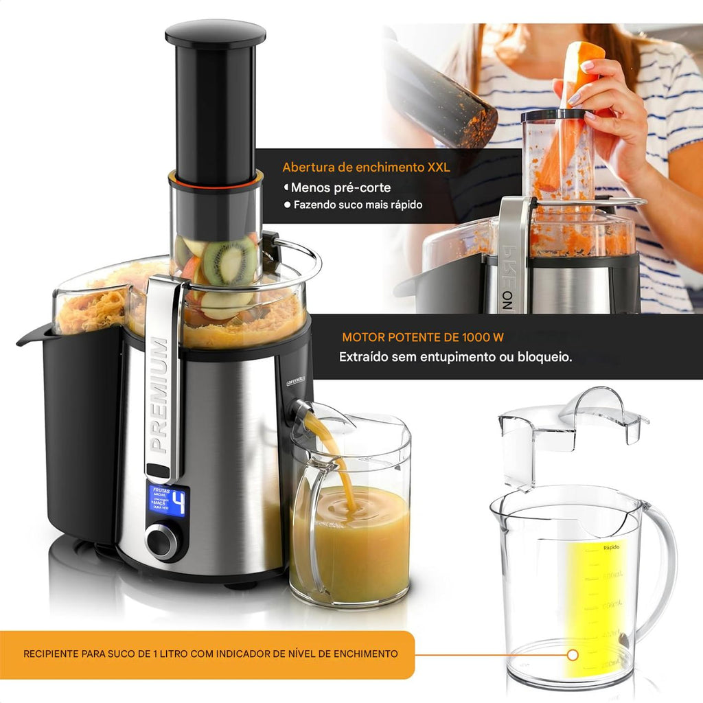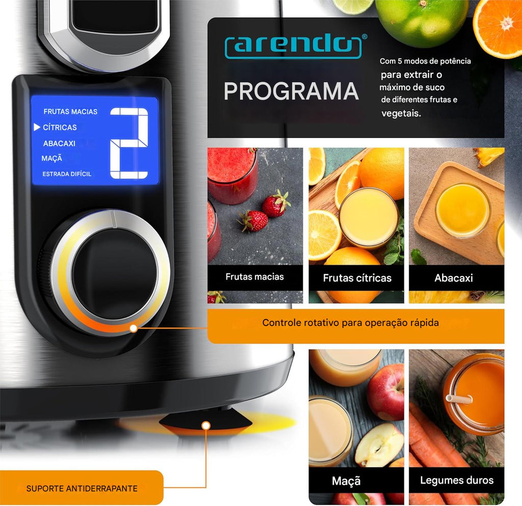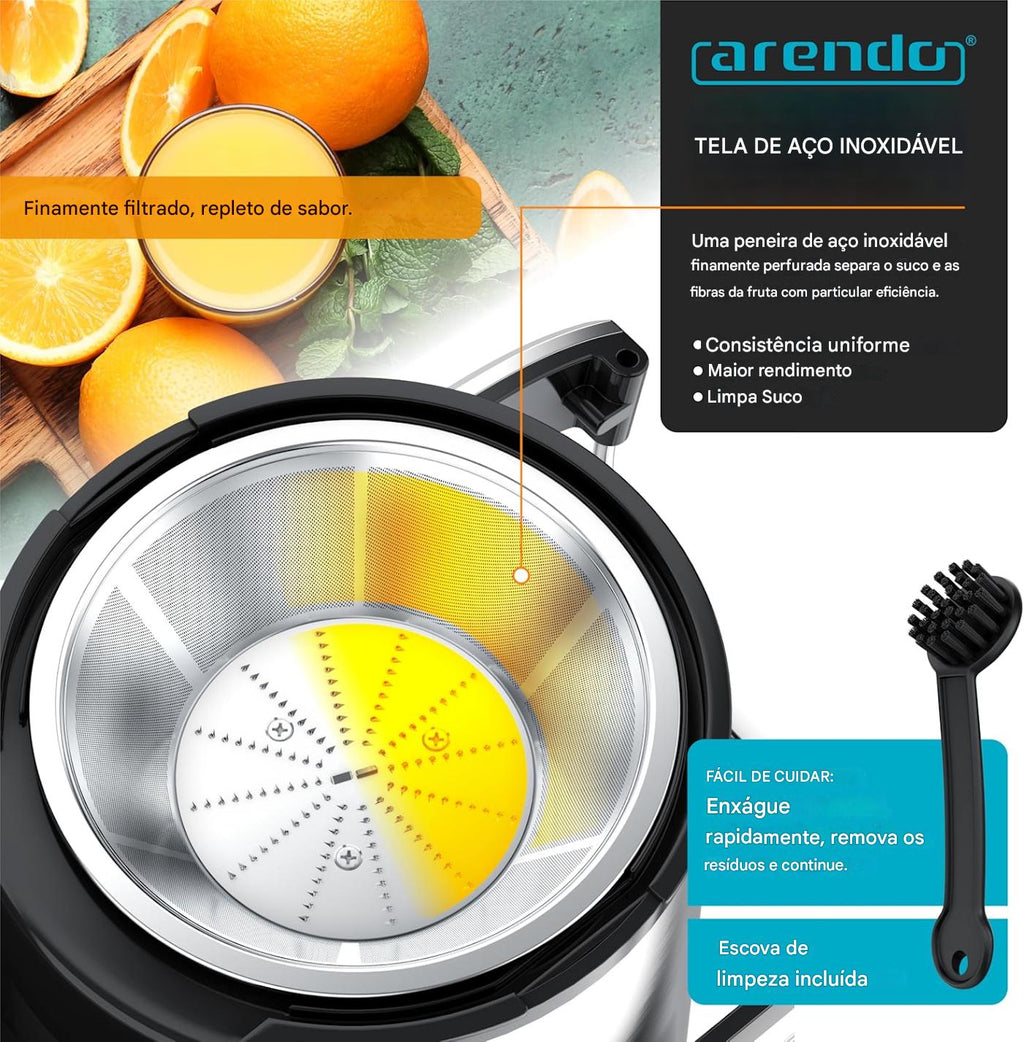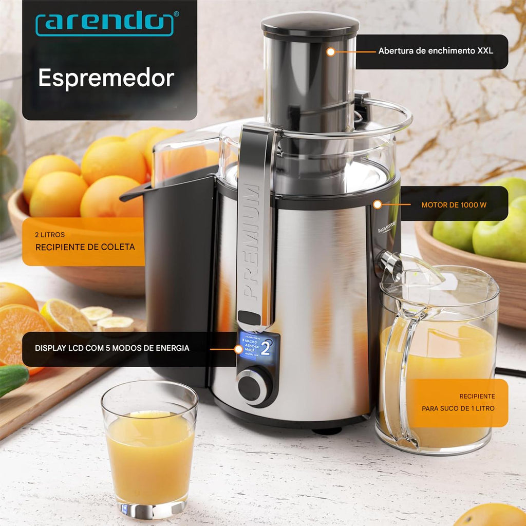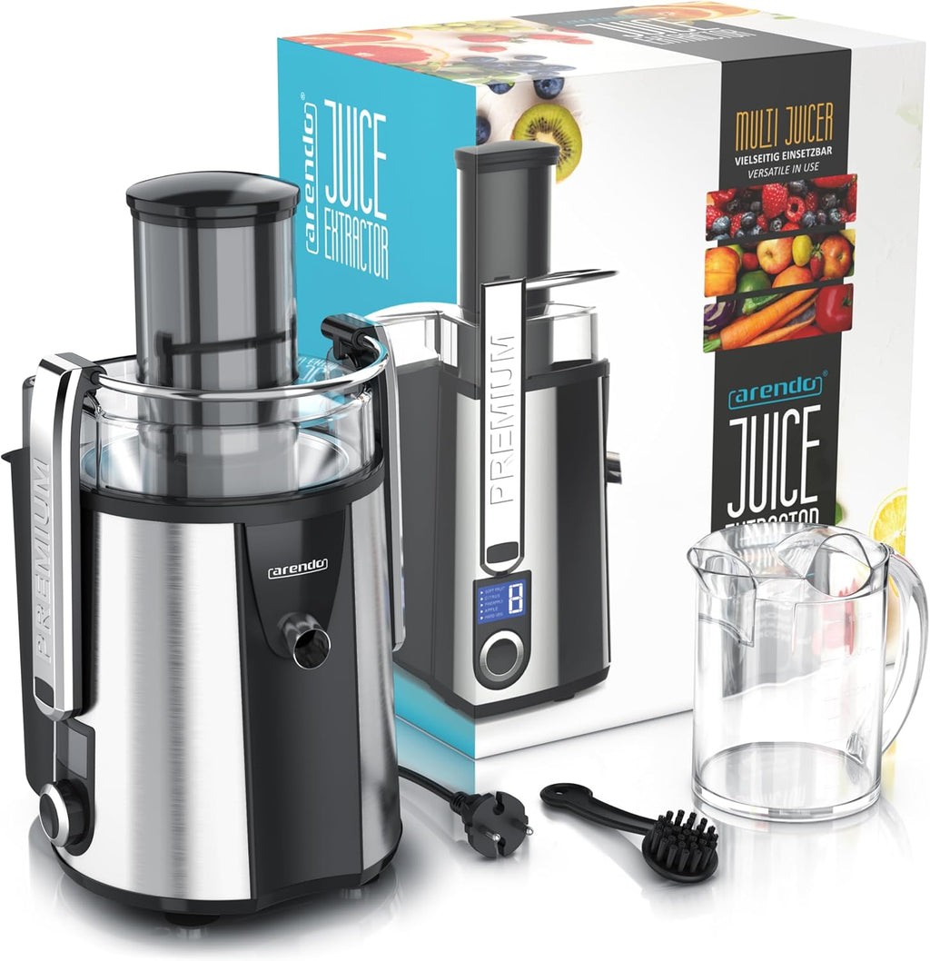 - LEISTUNGSSTARKER MOTOR: Mit seinem kraftvollen 1000-Watt-Motor verarbeitet der Arendo Entsafter mühelos Obst ebenso wie Gemüse. Damit halten ihn auch harte Stücke nicht auf. Dank der hohen Drehzahl werden die Zutaten in Sekundenschnelle zu frischem, nährstoffreichem Saft verarbeitet. So erzielst du stets eine maximale Saftausbeute bei minimalen Rückständen – ideal für den täglichen Vitamin-Boost. | 308022