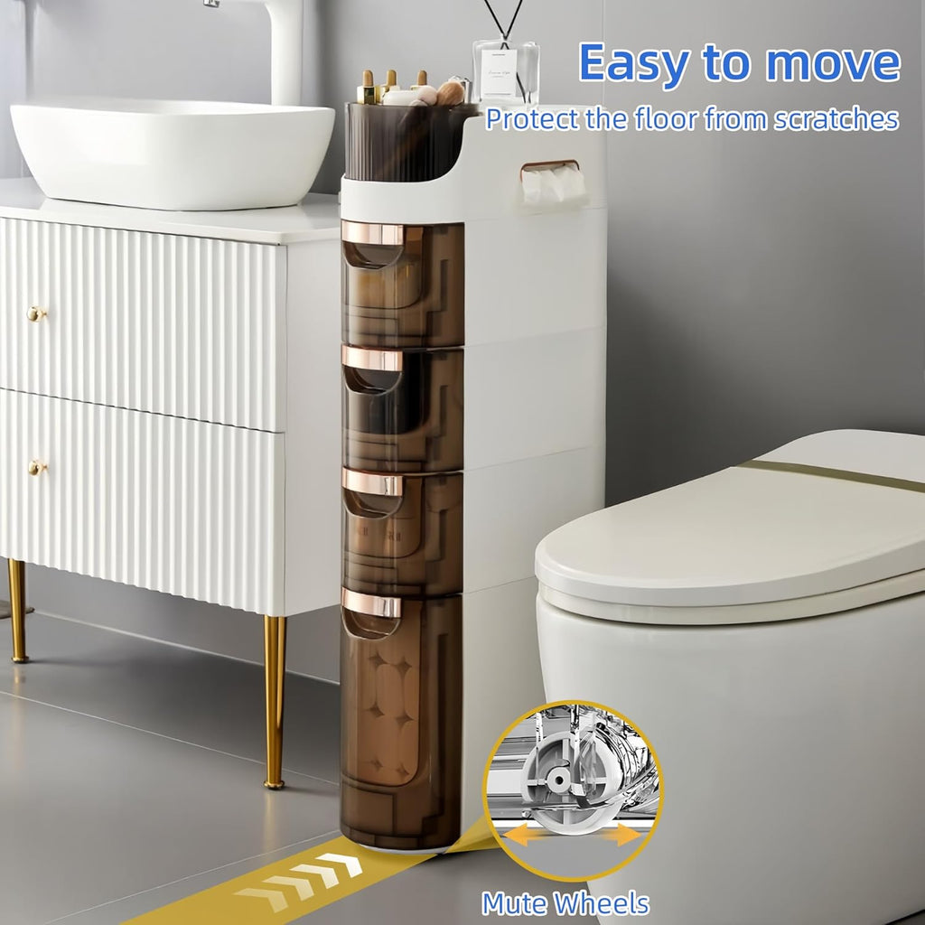 🚿 Armário de Armazenamento para Banheiro com Rodas e 4 Níveis – Estreito, Espaçoso e Pronto para Uso