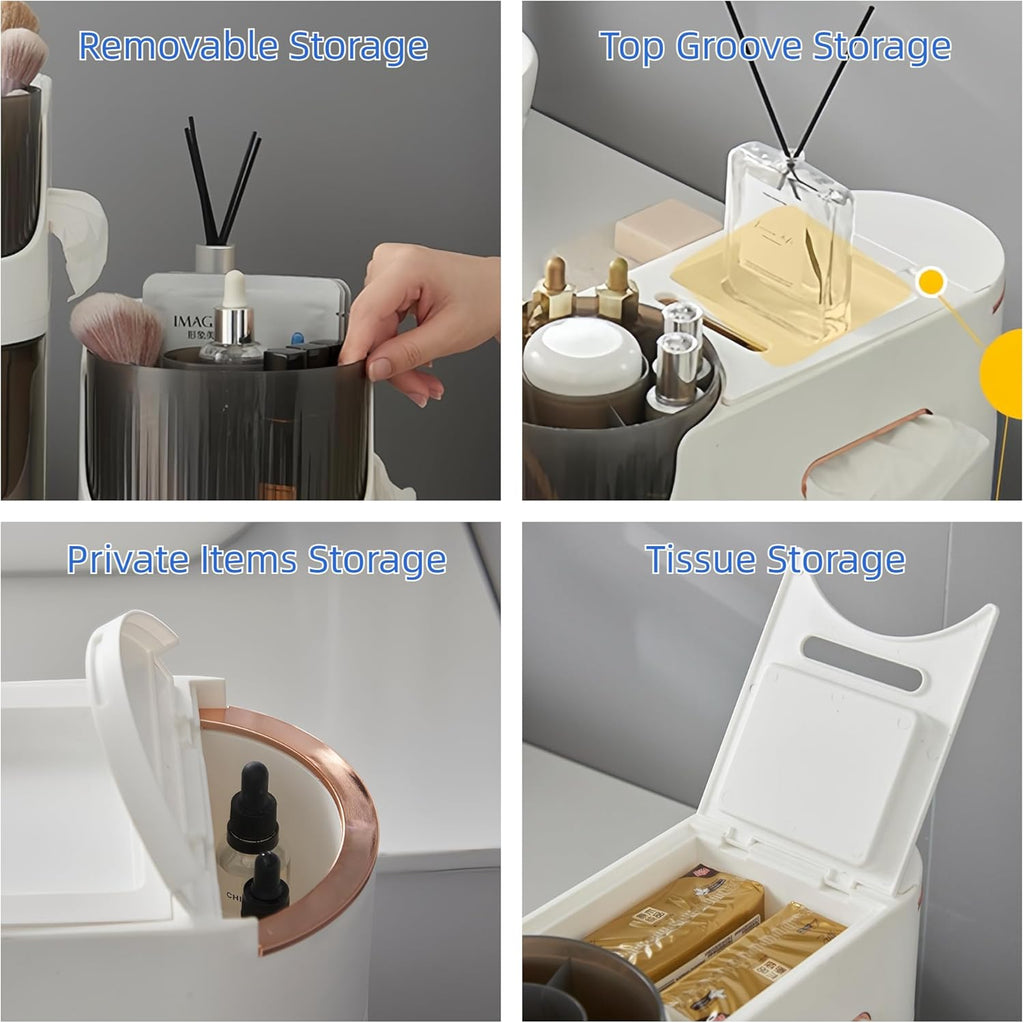 Possui 1 gaveta grande e 3 gavetas menores, proporcionando organização inteligente para diferentes tipos de itens. Na parte superior, conta com um conjunto multifuncional removível, incluindo: