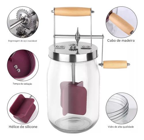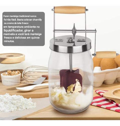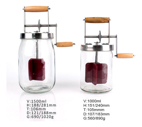 Batedor de Manteiga Manual com Manivela – 1,5L em Vidro, Aço Inoxidável e Madeira