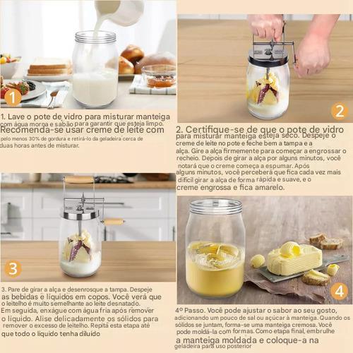 Basta adicionar o creme de leite, girar a manivela e em poucos minutos você terá manteiga fresca e pronta para consumo. Após o preparo, é recomendado colocar a manteiga em água fria para manter sua textura ideal.