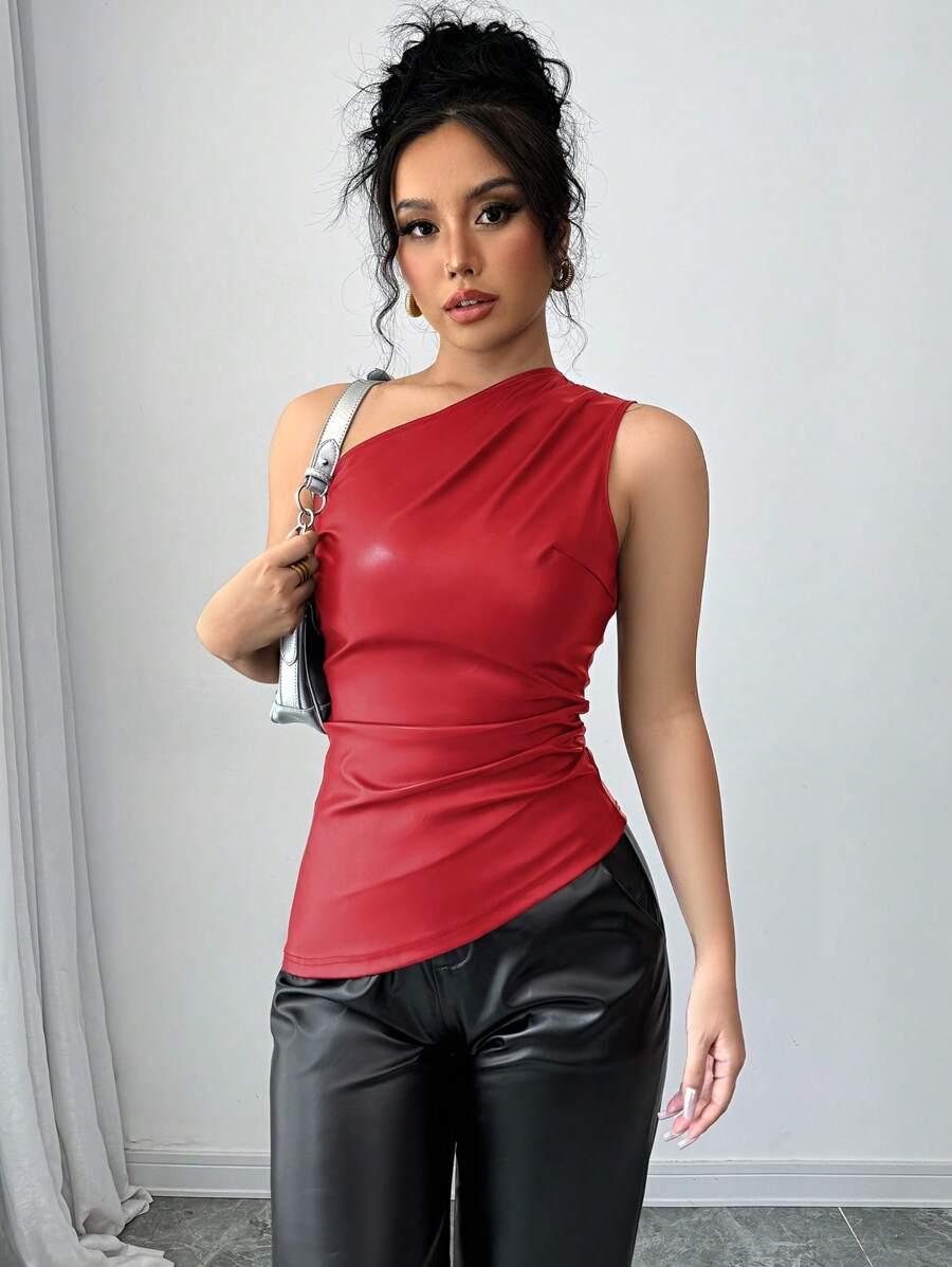 Encante-se com a Blusa Um Ombro Só em Couro!