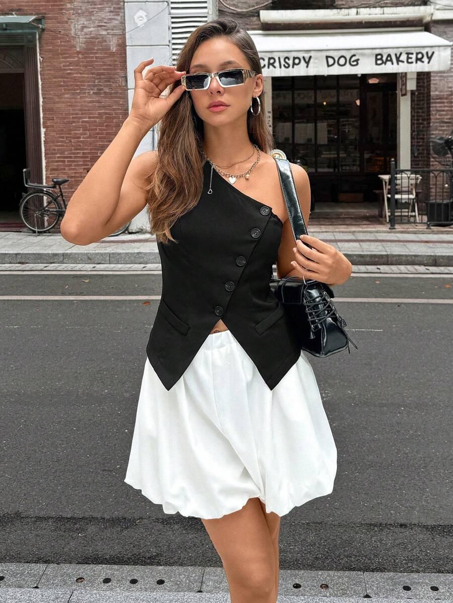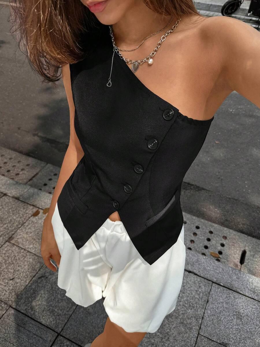 Destaque-se com a Blusa Um Ombro Só Minimalista – uma peça versátil que une elegância, modernidade e um caimento impecável.
