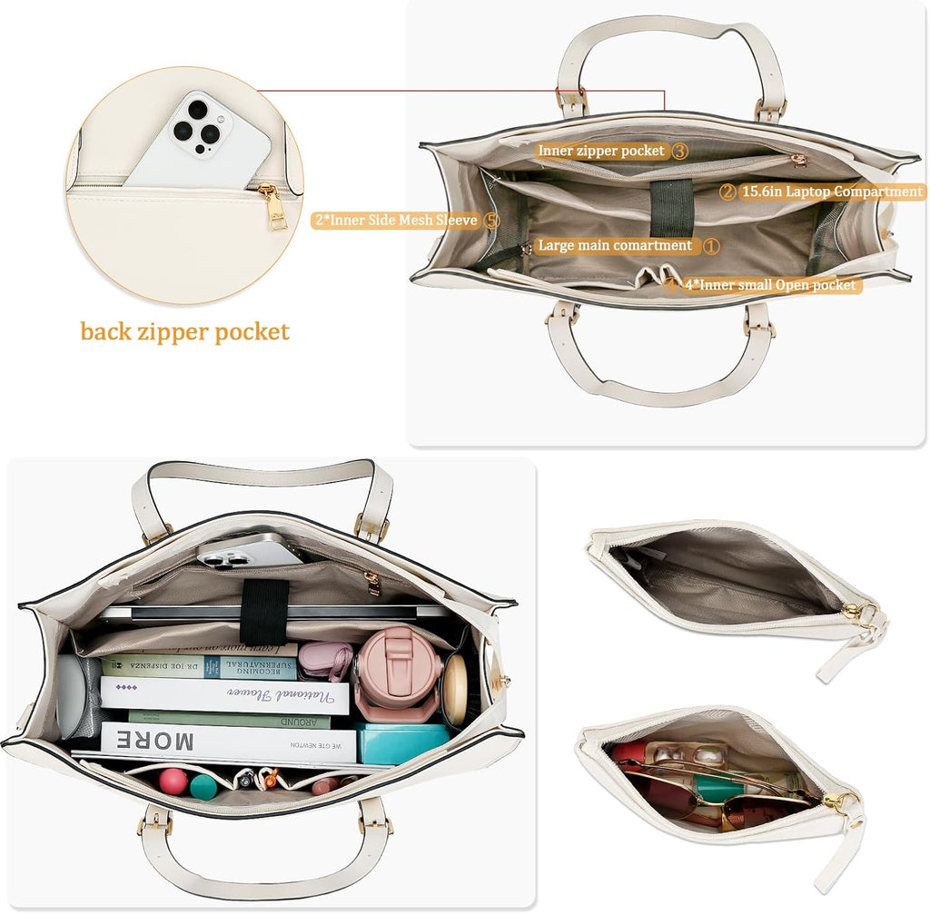 A bolsa conta com um compartimento acolchoado exclusivo para notebook de até 15,6 polegadas, além de espaço generoso para documentos, livros e itens pessoais. Para facilitar ainda mais o dia a dia, possui bolsos organizadores internos para celular, chaves e canetas, dois bolsos laterais em tela para garrafa de água ou guarda-chuva e um bolso traseiro com zíper para acesso rápido.