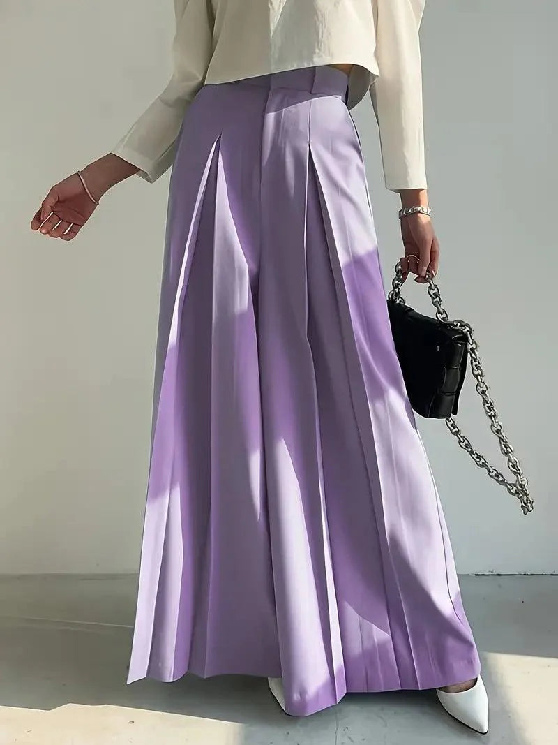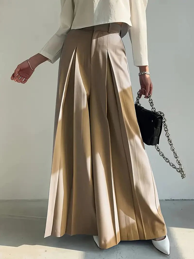 Tipo: Calça wide leg com plissado frontal