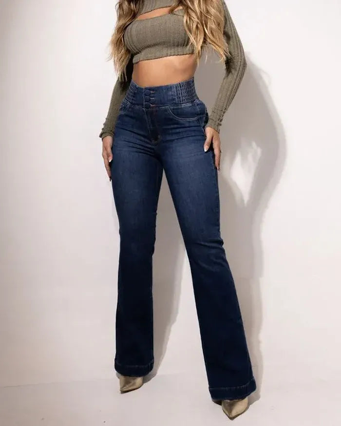Sinta o poder da modelagem com a Calça Jeans Flare de Cintura Alta!
