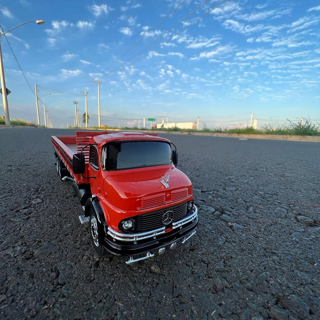 O Mercedes-Benz L-1113 RC 1/24 combina o charme dos brutos antigos com a tecnologia do controle remoto. Totalmente funcional, realista e personalizável — é o caminhão ideal pra quem vive o amor pelas estradas e quer sentir o poder nas mãos.