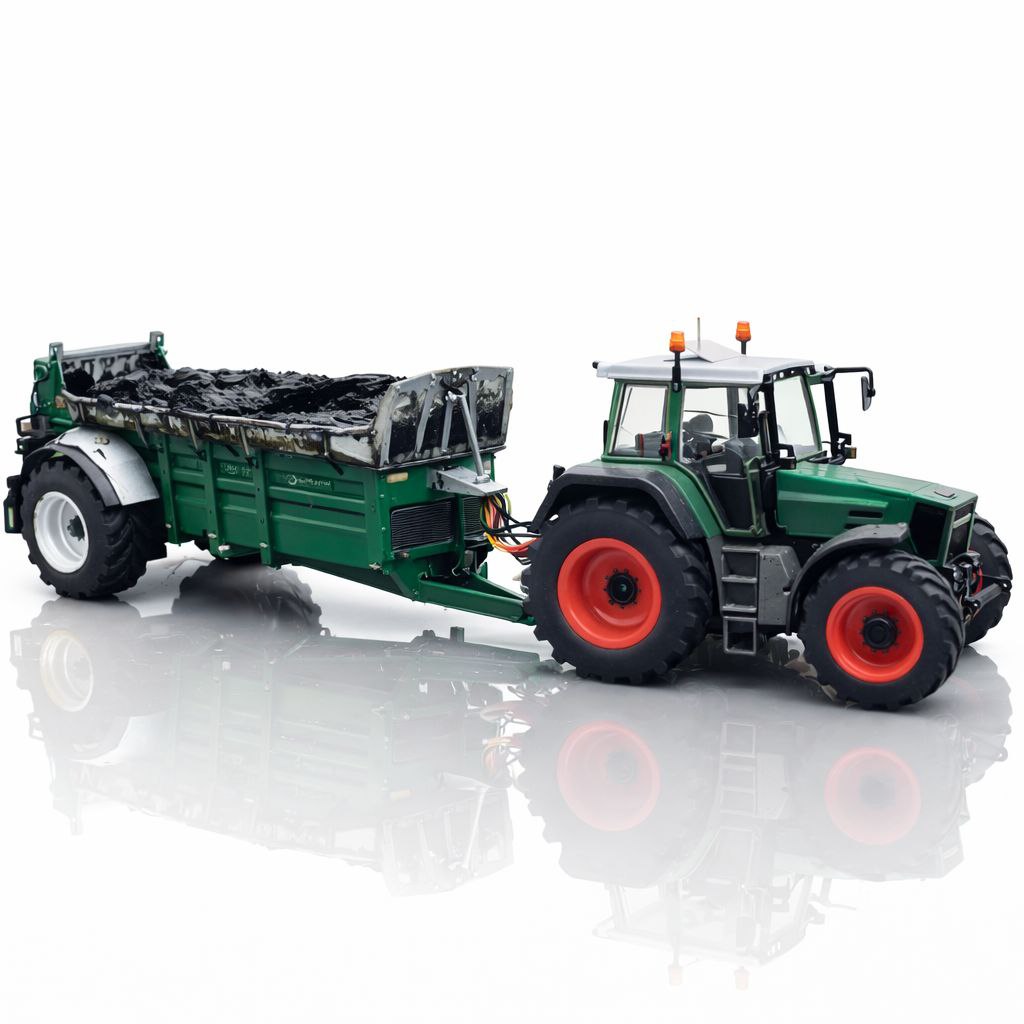 A Miniatura Fendt Favorit 500 Series + Joskin Manure Spreader (Esterqueira) - 1/24 (Controle Remoto) traz o realismo das operações agrícolas pesadas direto para a sua coleção. Um conjunto completo que combina potência, detalhes impressionantes e a experiência de simular o trabalho no campo com total controle.