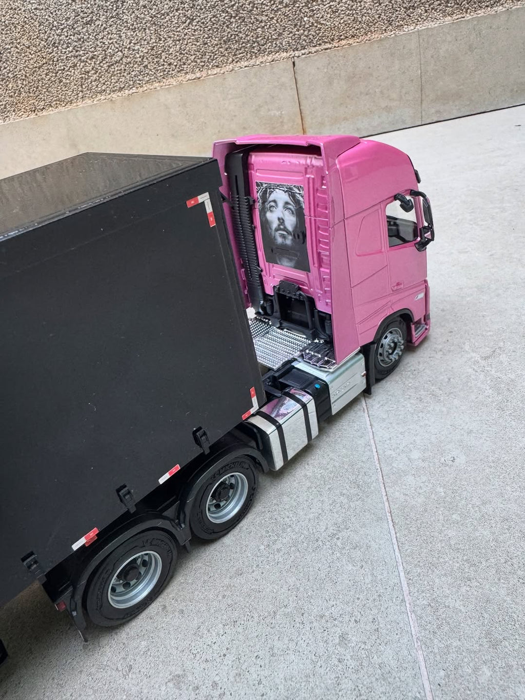 Cabine: Puxando no estilo clássico Volvo, na cor rosa metálico com acabamento impecável.